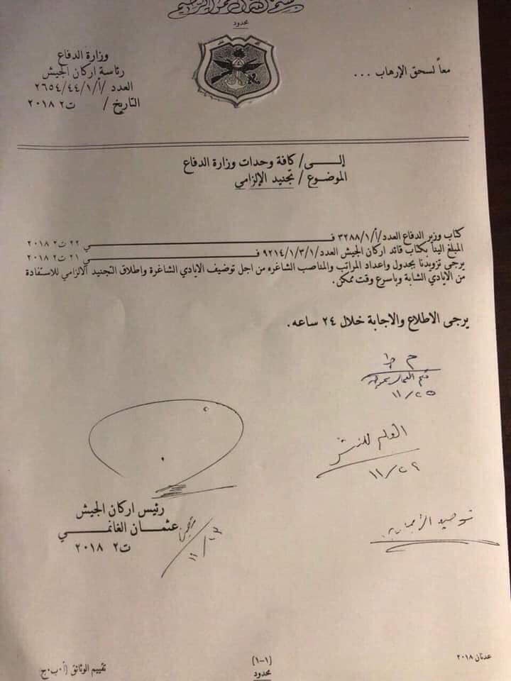 بالوثيقة .. رئاسة أركان الجيش تخاطب الوحدات العسكرية لتزويدها بالشواغر لإطلاق التجنيد الإلزامي