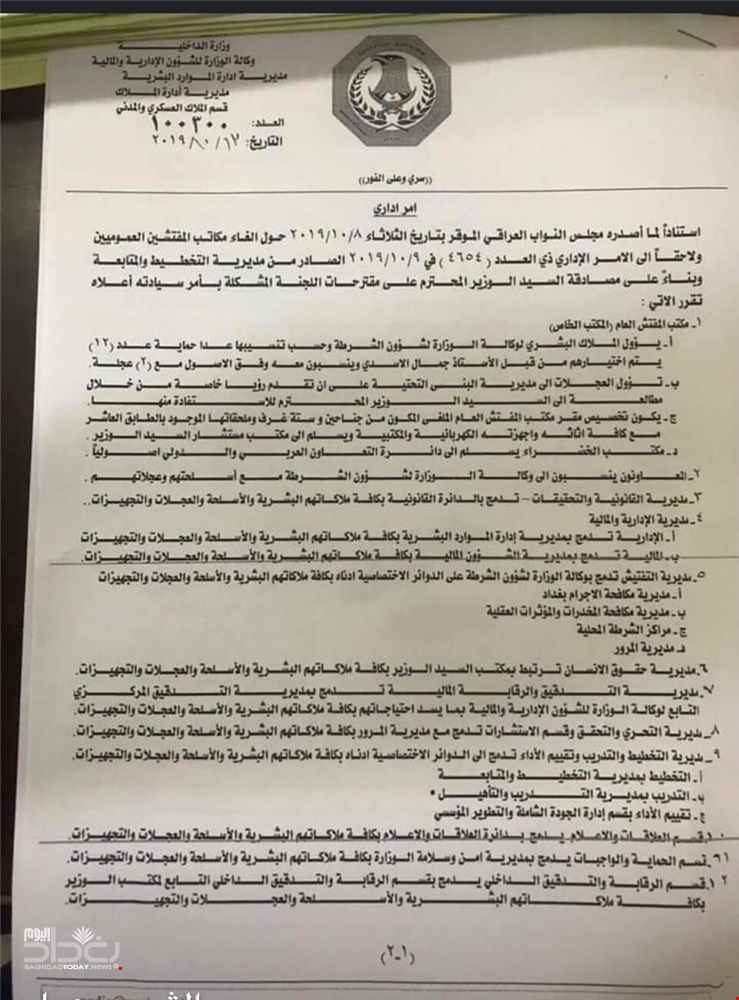 أصدرت وزارة الداخلية، تعليمات بشأن مصير الموظفين بمكتب المفتش العام للوزارة بعد قرار البرلمان بالغائه.