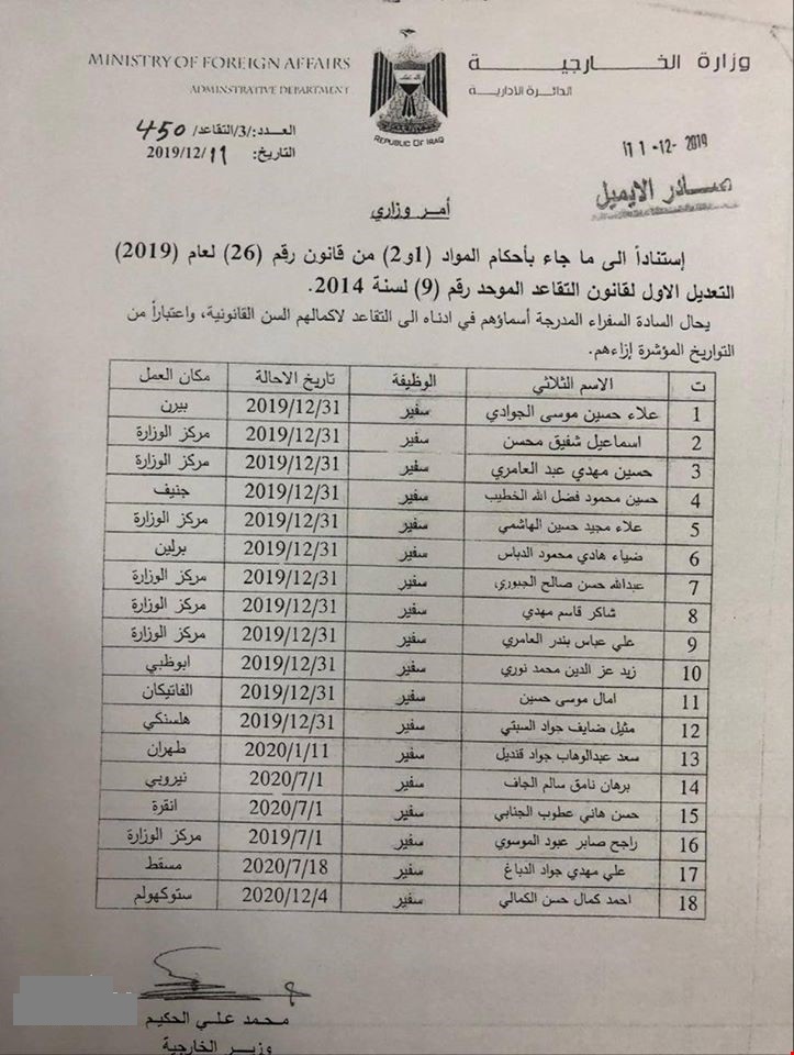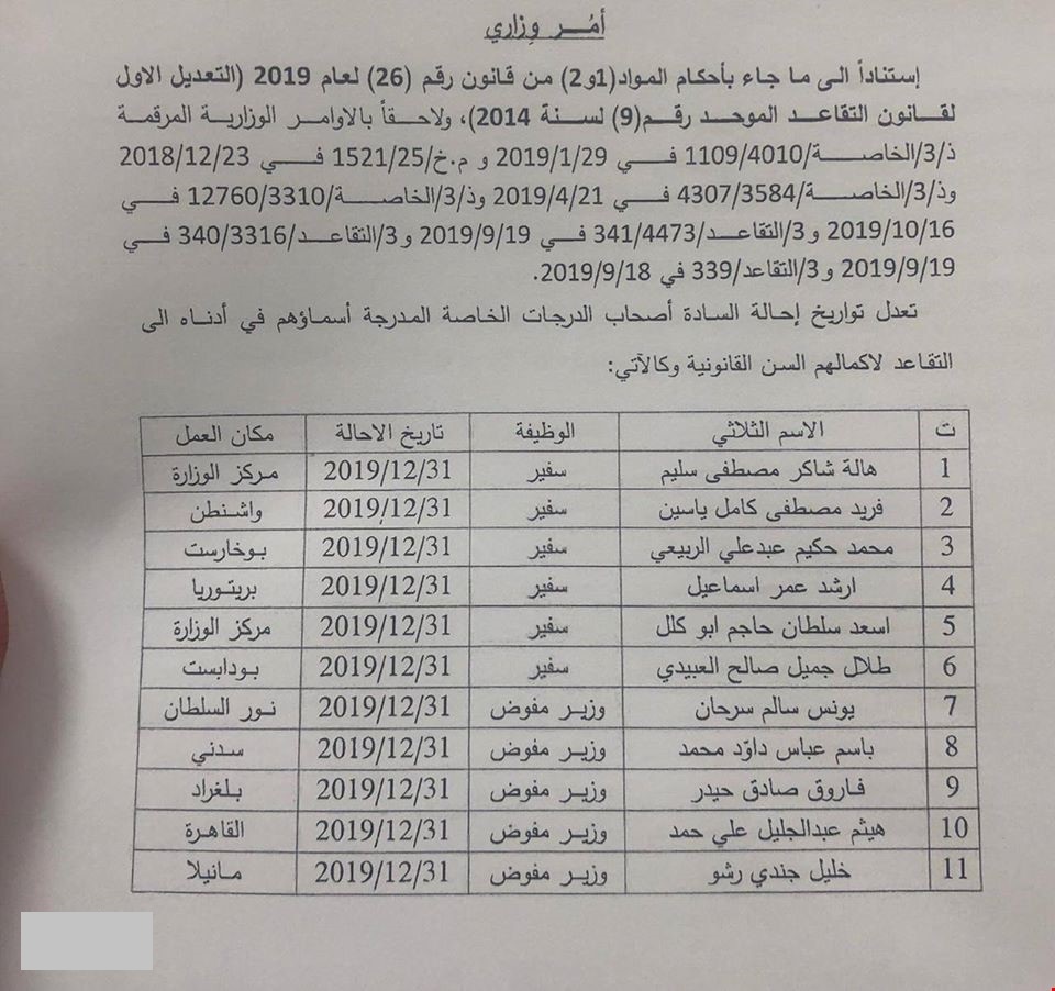 بالاسماء: الخارجية تحيل 29 سفيراً ووزيراً مفوضاً الى التقاعد