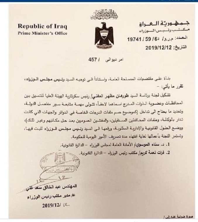 بالوثيقة مجلس ذي قار يحدد صلاحيات مستشاري المحافظ ويمنع تدخلهم في الأعمال الرقابية