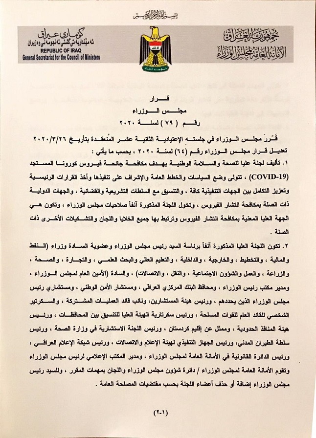 اصدر مجلس الوزراء، عدد من القرارات بشأن مكافحة وباء كورونا في العراق.