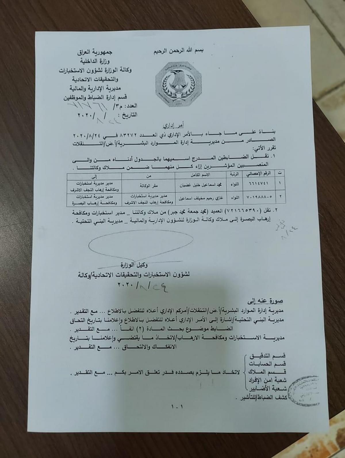 تكليف اللواء غازي رحيم مديراً لإستخبارات ومكافحة إرهاب البصرة