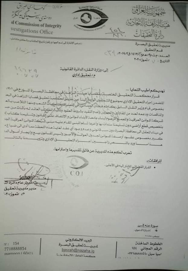 بالوثيقة.. النزاهة تؤشر “فسادا” لوزير النقل الاسبق كاظم فنجان الحمامي