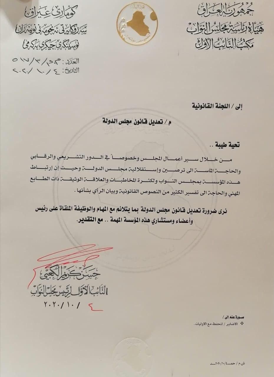 بالوثيقة.. رئاسة البرلمان توجه بتعديل قانون مجلس الدولة