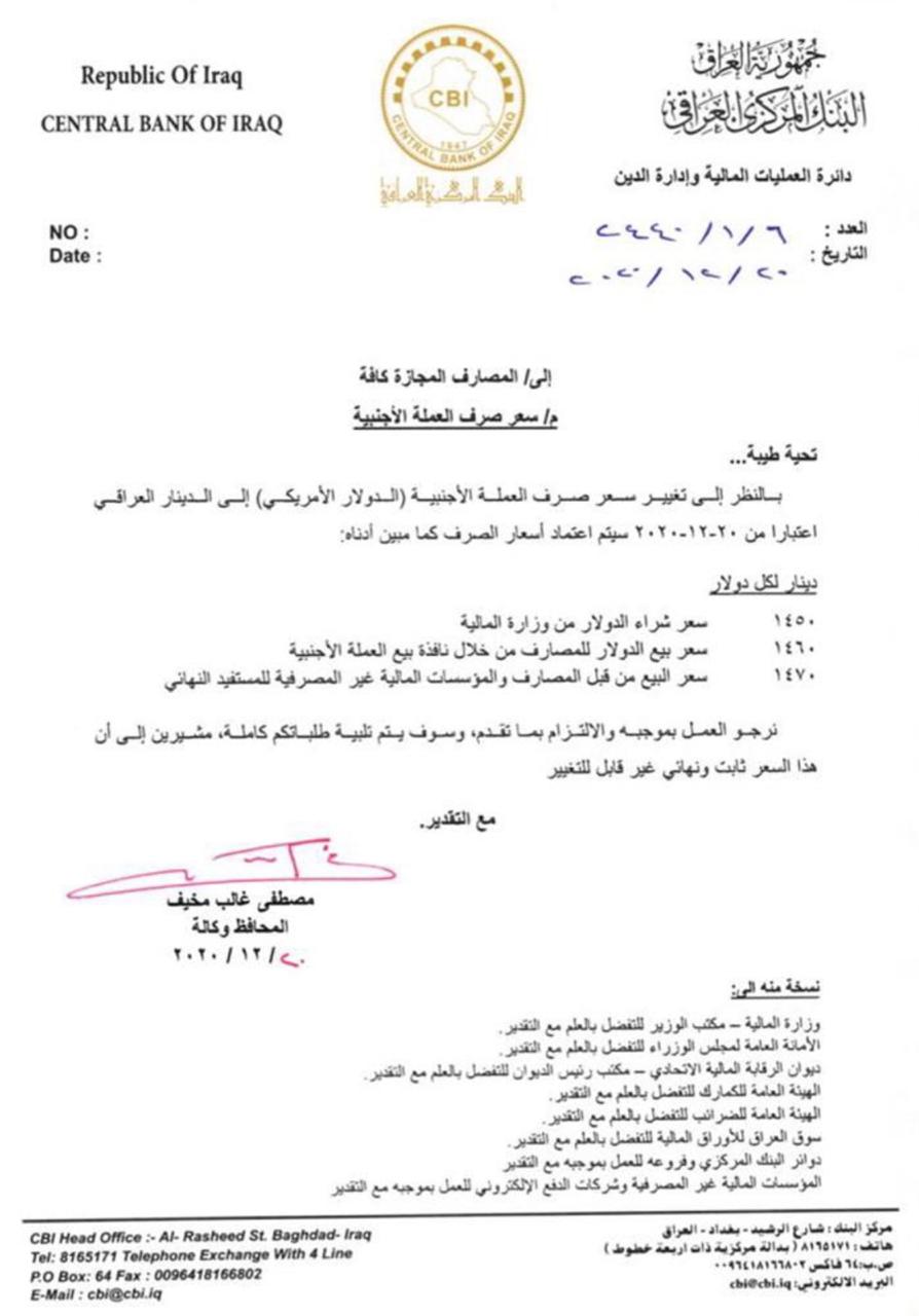 بالوثيقة .. البنك المركزي يوجه المصارف باعتماد السعر الجديد لصرف الدولار مقابل الدينار