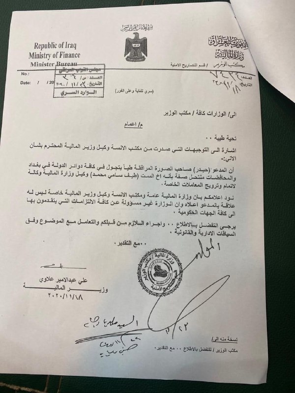 بالوثيقة .. المالية تتبرأ من منتحل صفة أخ وكيلة الوزارة طيف سامي محمد