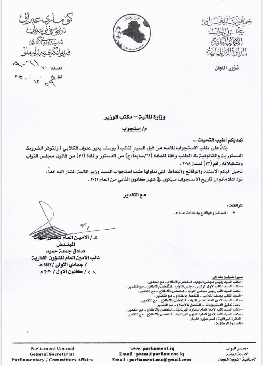 بالوثيقة .. تحديد موعد استجواب وزير المالية