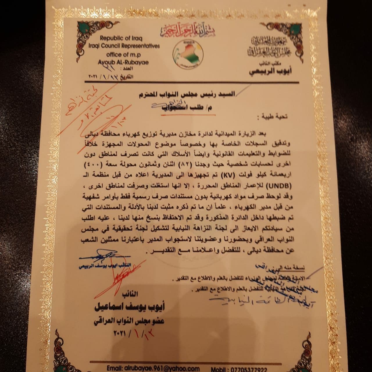 بالوثيقة..تشكيل لجنة تحقيق برلمانية بحق مدير كهرباء ديالى