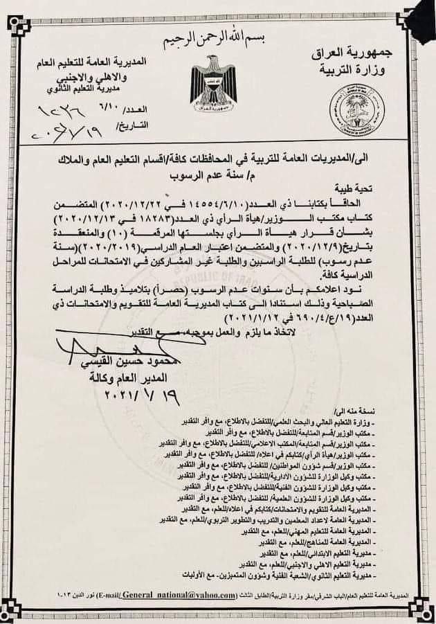 وزارة التربية تحدد المشمولين بقرار سنة عدم الرسوب.