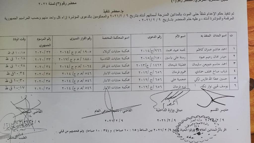 بالوثيقة.. اسماء المحكومين الذين نفذت بحقهم عقوبة الاعدام في سجن الناصرية