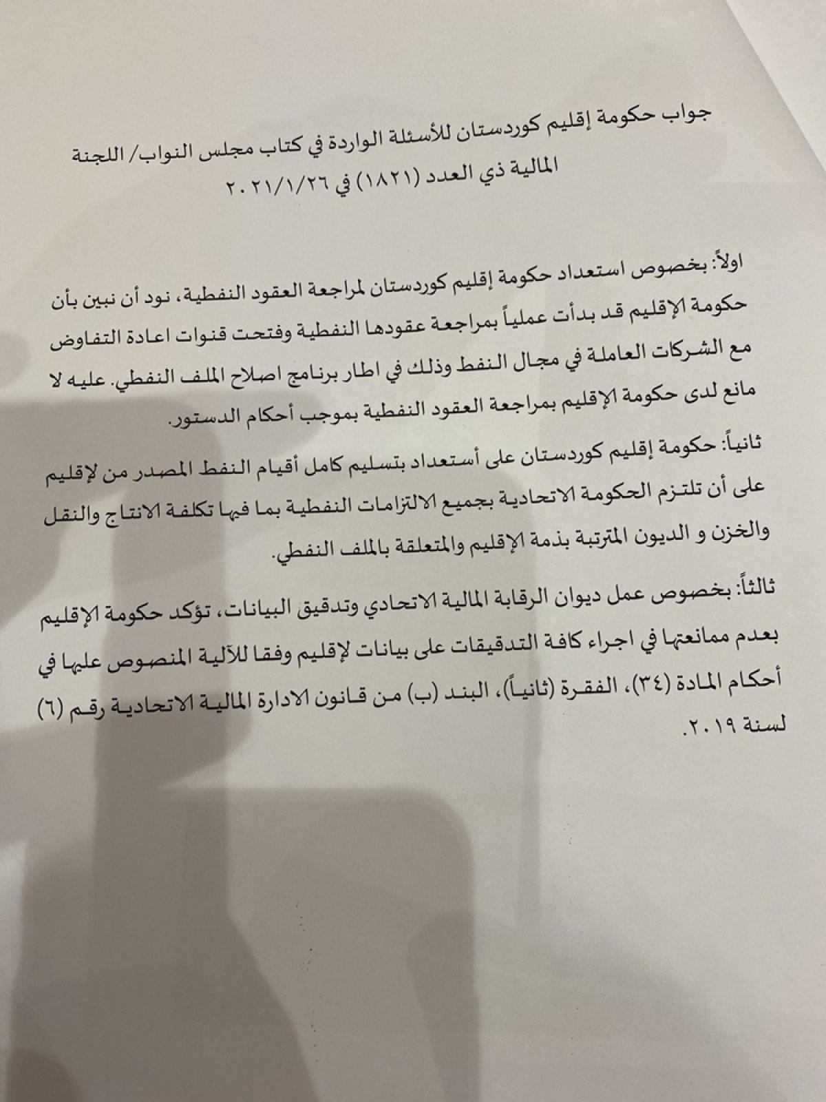 بالوثيقة .. حكومة كردستان تعلن رسميا استعدادها تسليم كامل النفط لبغداد شريطة تسديد ديون الاقليم النفطية