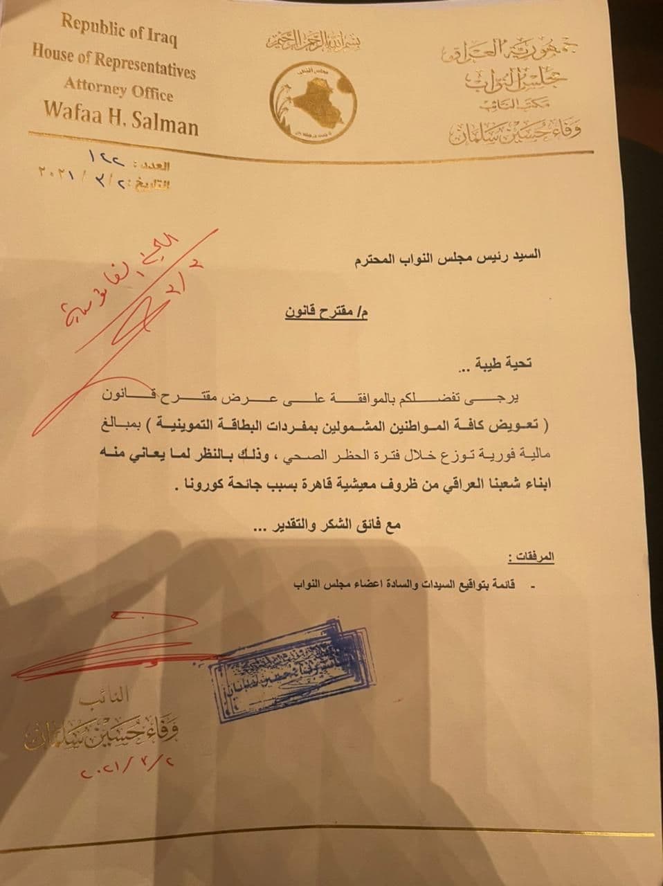 بالوثيقة..تواقيع نيابية لتعويض المواطنين من اجراءات حظر التجوال