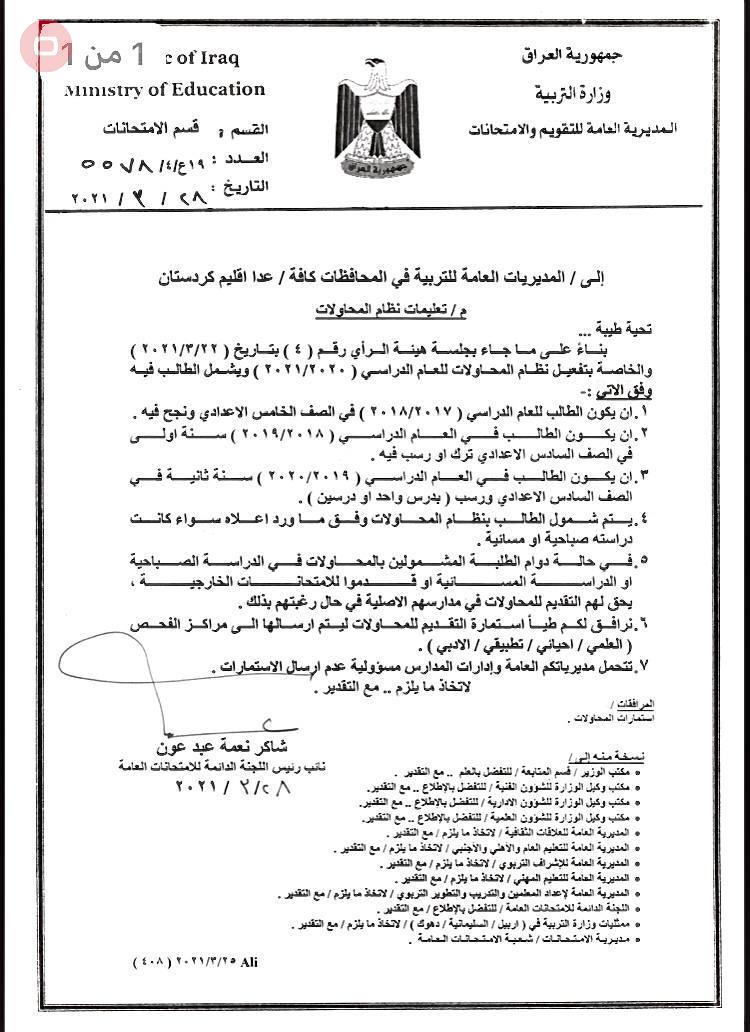 نشرت وثيقة اصدرتها وزارة التربية، اليوم الاحد، 28 آذار والخاصة بتعليمات نظام المحاولات.