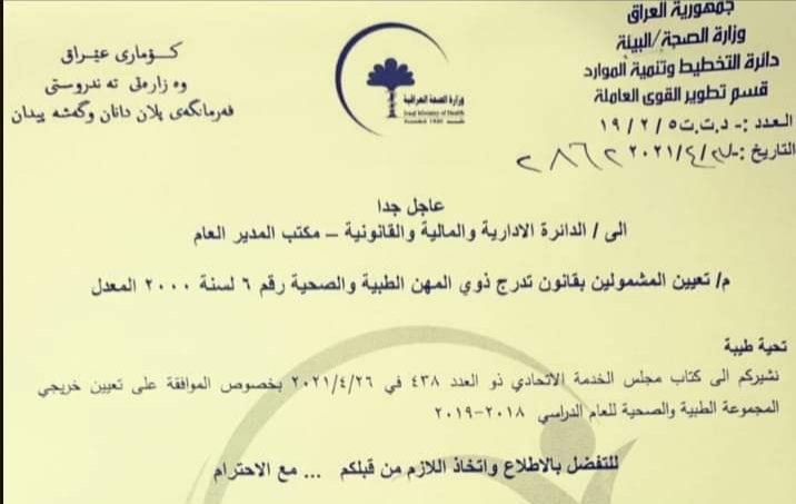 ونشرت نسخ متداولة من أوامر المجلس والمتضمنة الموافقة على تعيين خريجي الكليات والمعاهد الطبية والصحية للعام ٢٠١٨ / ٢٠١٩ وعلى ملاك وزارة الصحة والبيئة.