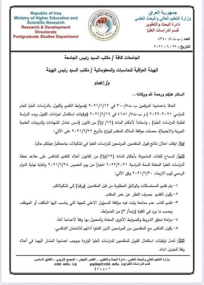 اثار قرار وزارة التعليم العالي، بفتح باب التقديم للدراسات العليا واجراء امتحان تنافسي ثاني خاص بالنواب والدرجات الخاصة، حفيظة الطلبة في العراق.
