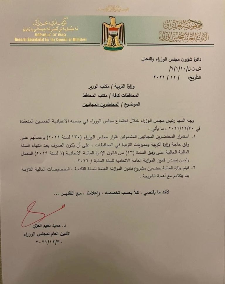 بالوثيقة.. مجلس الوزراء يصدر توجيهين بشأن المحاضرين المجانيين