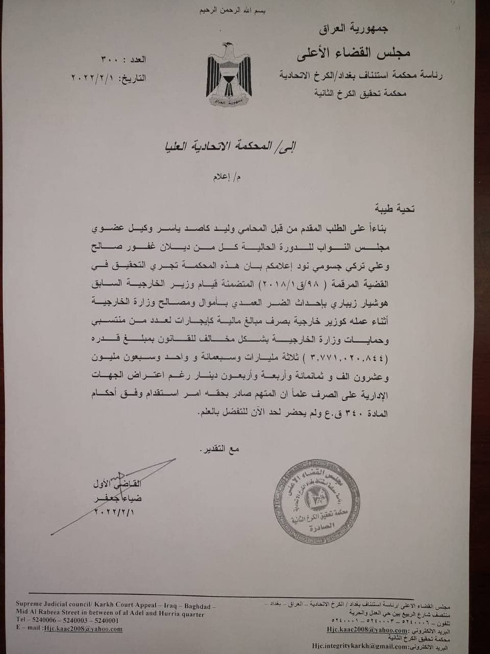 بالوثيقة.. القضاء يحقق باتهامات فساد ضد زيباري