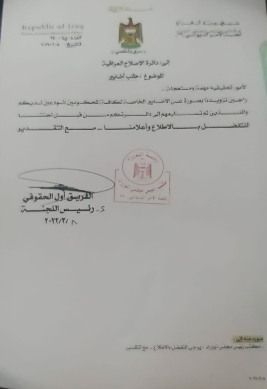 متحديا مذكرة الاعتقال الصادرة بحقه ...بالوثيقة ..ابو رغيف يمارس مهامه ويطالب باضابير المحكومين في دائرة الاصلاح
