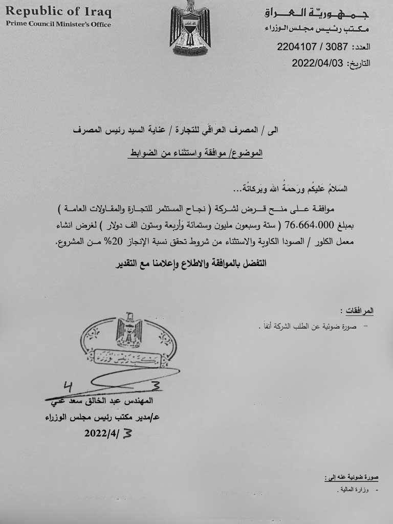 بالوثيقة ..الكاظمي يمنح شركة “نجاح للاستثمار ” قرضا باكثر من 76 مليون دولار خارج الضوابط