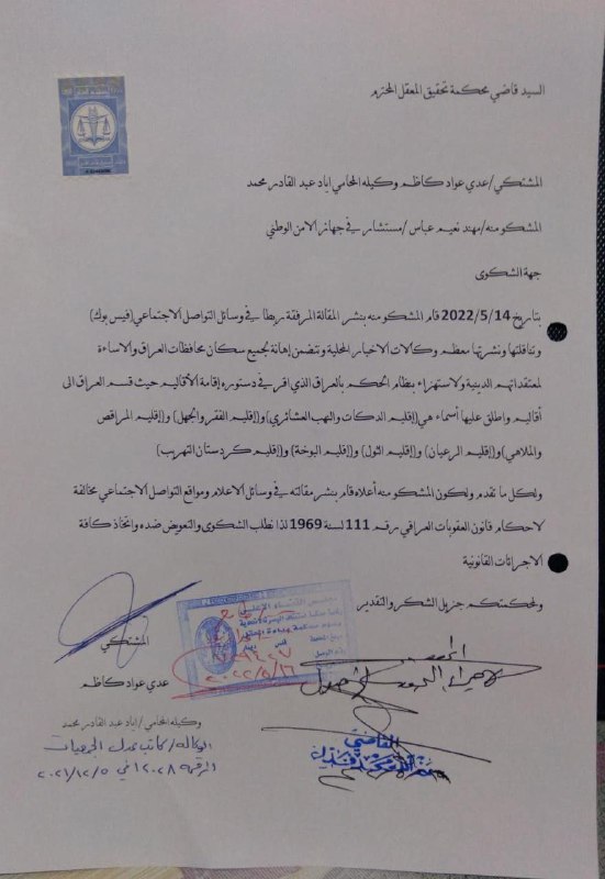 بالوثيقة : مذكرة قبض صادرة من محكمة تحقيق الكرخ بتأريخ 11-8-2020 بحق زعيم جبهة النصرة أبو محمد الجولاني.