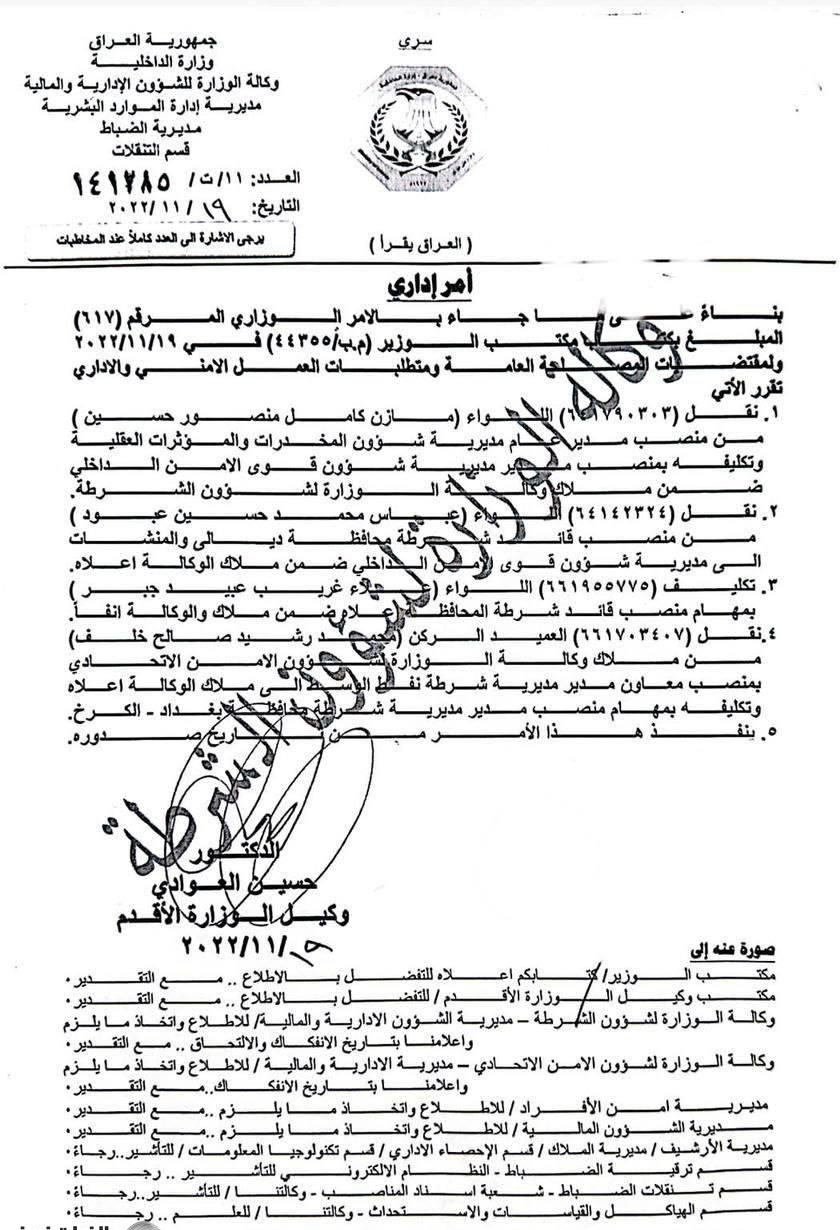 بالوثيقة.. تغيرات بالجملة تطال عدداً من مفاصل وزارة الداخلية