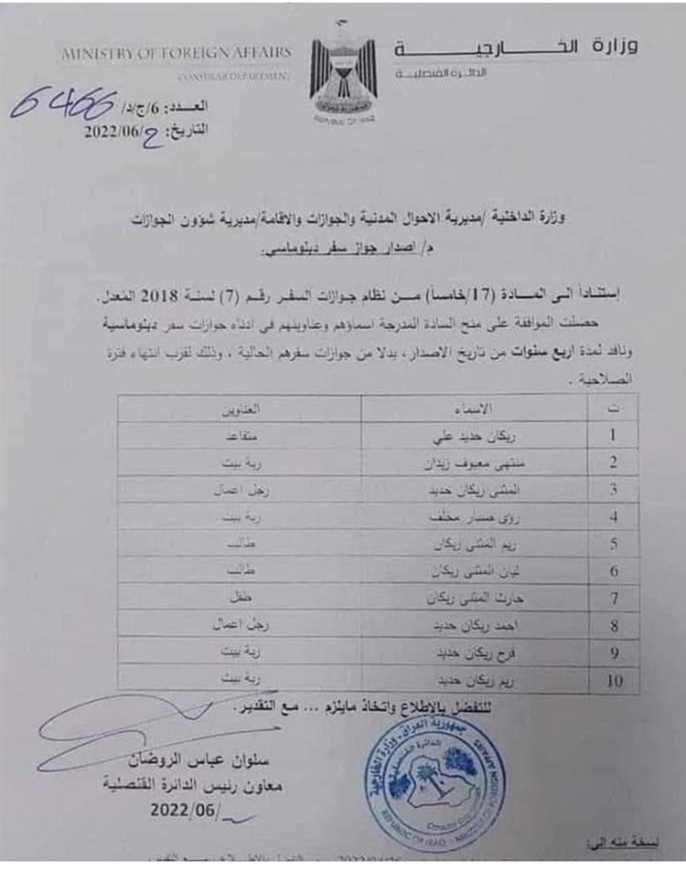 بالوثيقة.. عائلة الحلبوسي تسحوذ على جوازات السفر الدبلوماسية