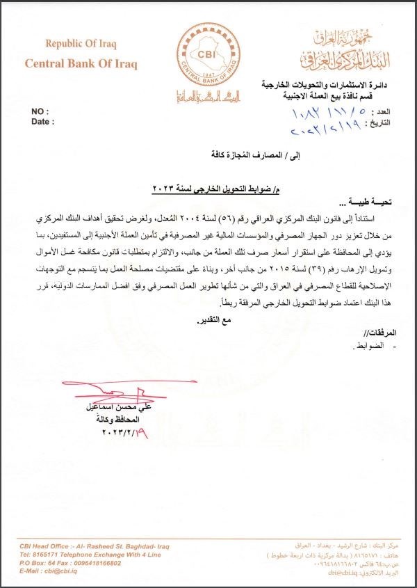 بالوثائق.. البنك المركزي يصدر ضوابط جديدة لتحويل الأموال الى الخارج
