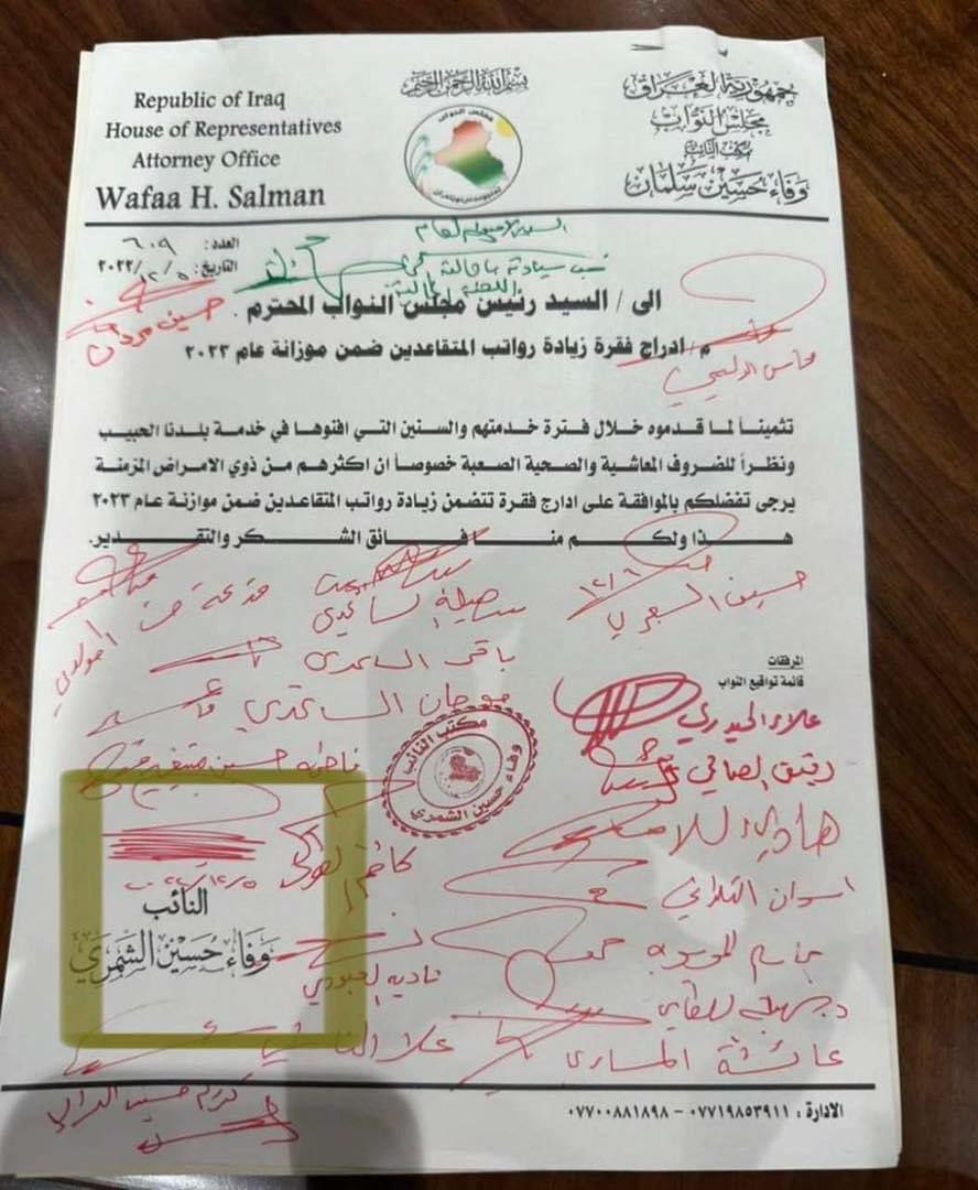 جمع تواقيع نيابية لادراج فقرة تتضمن زيادة رواتب المتقاعدين ضمن موازنة 2023.