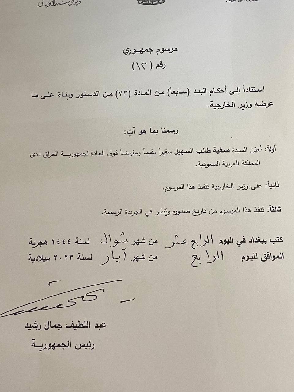 بالوثيقة صفية السهيل سفيرة للعراق في السعودية !