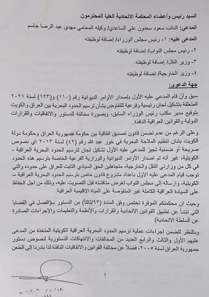بالوثيقة.. نائب يطعن بتشكيل لجان ترسيم الحدود البحرية العراقية الكويتية