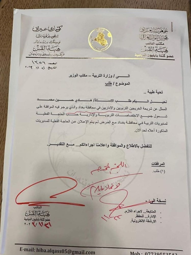 بالوثيقة التربية النيابية تعلن عن رفع كتاب عاجل الى وزارة التربية لأعادة العمل بنظام تحسين المعدل.