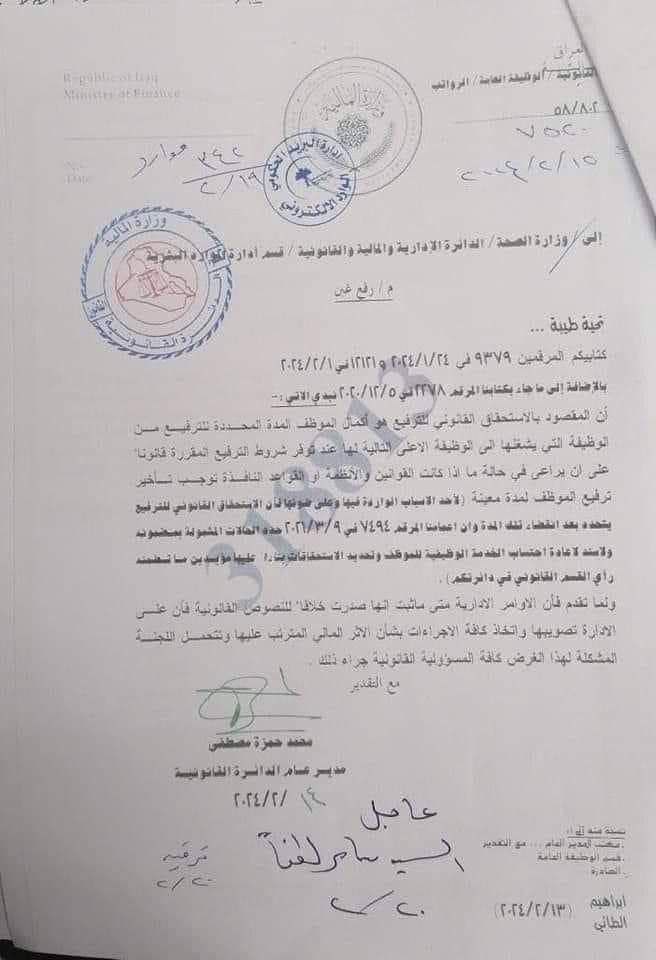 بالوثيقة..المالية تحمل الدوائر مسؤولية تأخير ترفيع الموظفين