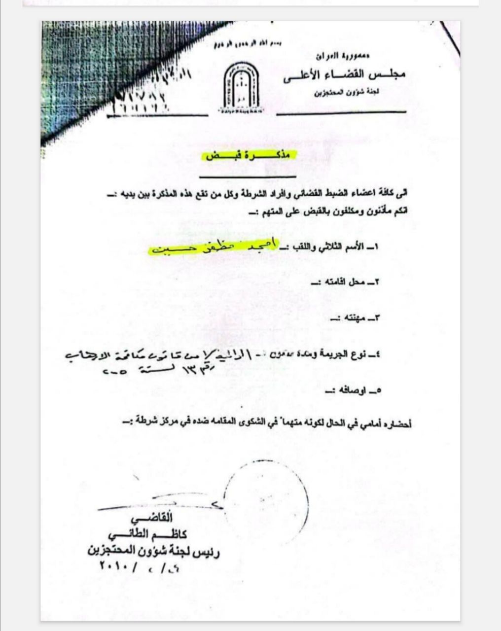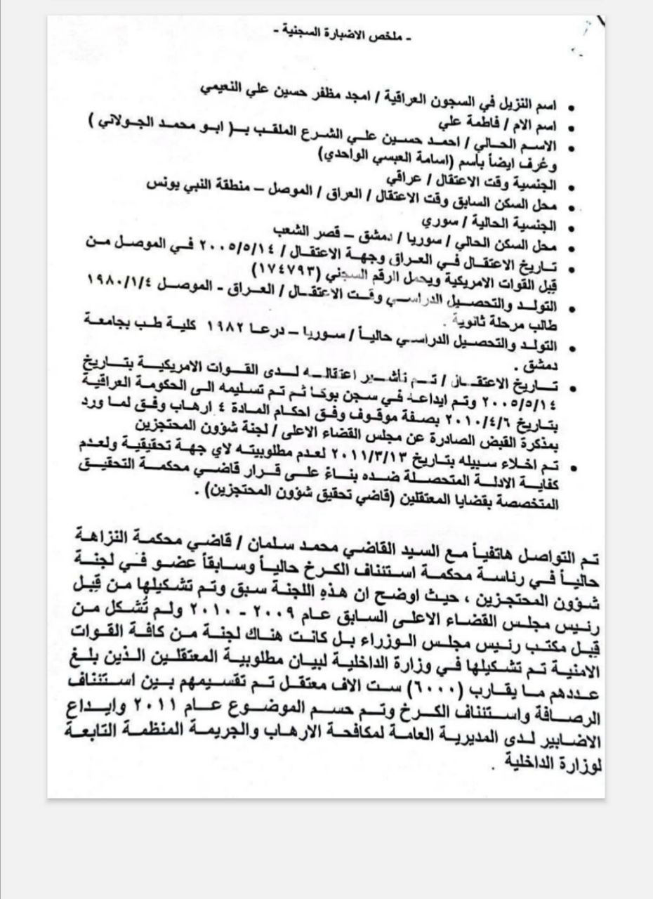 - مذكرة إلقاء قبض لمجلس القضاء الأعلى بحق الجولاني والاضبارة السجنية