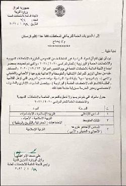 وزارة التربية تعلن عن المواد الدراسية غير الداخلة في الامتحانات الوزارية للمراحل المنتهية.