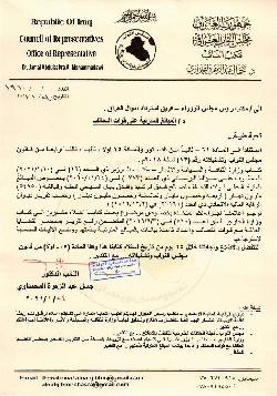بالوثيقة : الأمن النيابية تخاطب الكاظمي لاستضافة القادة الأمنيين للتحقيق بتفجيري ساحة الطيران.