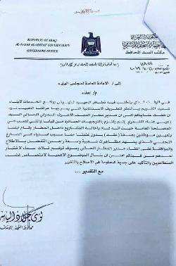 بالوثيقة.. محافظ النجف لؤي الياسري يطالب باعفاء مدير مطار النجف بسبب حالات الفساد بحسبه.