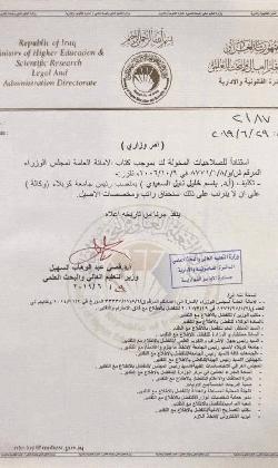 بالوثيقة.. انهاء تكليف رئيس جامعة كربلاء