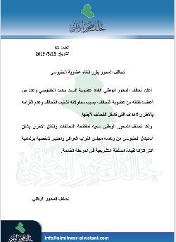 بالوثيقة.. تحالف المحور يقرر الغاء عضوية الحلبوسي