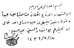 بالوثيقة وبخط يده وختمه.. الامام المفدى السيد علي السيستاني يخص شهداء الفتوى بتكريمٍ خاص