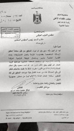 بالوثيقة..رئيس كتلة كردية متهم بتزوير شهادته الدراسية والقضاء يطلب رفع الحصانة عنه