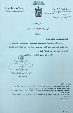 بالوثيقة.. تكليف منذر عبد الامير بمهام مدير عام الجمارك