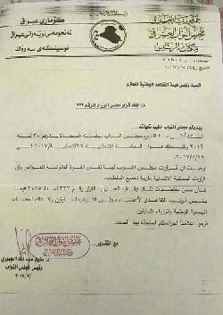 بالوثيقة..الجبوري يطلب ايقاف العمل بقرار الحكومة الخاص بإلغاء تقاعد النواب والوزراء