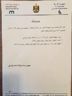 بالوثيقة .. استقالة الشلاه من رئاسة شبكة الاعلام العراقي وتكليف ابو الهيل بدلا عنه