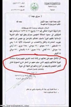 وثيقة سرية تكشف اعفاء سلطات نظام آل سعود عن محكومين بالموت مقابل القتال في سوريا