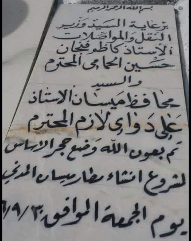 وقال الحمامي في تصريحتابعته وكالة انباء براثا انه وضع حجر الأساس لمطار ميسان المدني بحضور المحافظ علي دواي وأعضاء مجلس المحافظة.