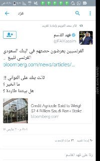 فيما قال المغرد فهد القاسم ان الفرنسيين قاموا بعرض حصتهم في البنك السعودي الفرنسي للبيع مشيرا الى هذا البنك هو الثالث على التوالي متسائلا عن السبب