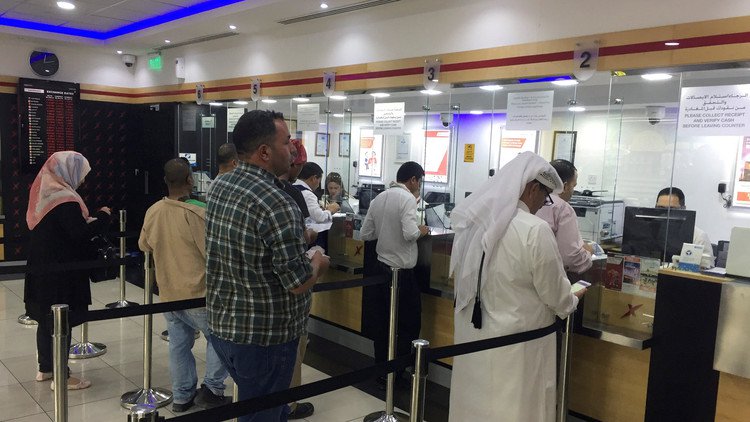 ووقف عشرات الأشخاص من الأجانب، الذين يشكلون نحو 90 في المئة من سكان قطر البالغ عددهم 2.6 مليون نسمة، في طابور أمام مكتب الصرافة لتغيير أموال أو إجراء تحويلات إلى بلادهم.