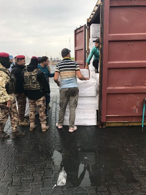 وقال قائد العمليات الفريق الركن جميل الشمري في تصريح صحفي ، إن 'قوة أمنية ضبطت في ميناء أم قصر الجنوبي حاوية شحن تحتوي على شحنة مهربة من العقاقير المخدرة'، مبيناً أن 'الشحنة تتكون من 80 ألف علبة، وبذلك تكون أكبر كمية من المواد المخدرة يتم ضبطها في المحافظة'.
