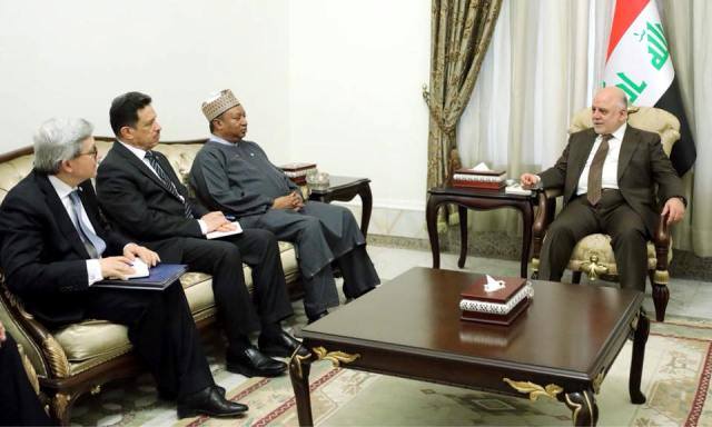 وقال المكتب الاعلامي لرئيس الوزراء حيدر العبادي في بيان إن الاخير "استقبل، اليوم، الامين العام لمنظمة اوبك محمد باركيندو والوفد المرافق له"، مبينا أنه "جرى خلال اللقاء مناقشة الرؤية المستقبلية لدول اوبك بخصوص النفط واهمية الحفاظ على استقرار المنطقة، اضافة الى دور العراق الكبير في المنظمة".