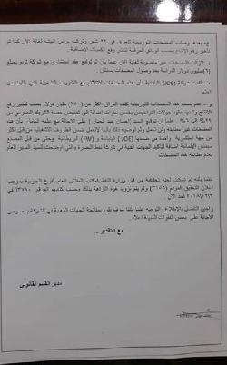 ولفتت المطالعة الى مخالفات تتعلق بـ"مضخات الفاو التوربينية الرأسية عدد (10+ 4)، وعدم نصبها منذ وصولها لغاية الان رغم توقيع عقد لهذا الغرض بقيمة 6 مليون دولار"، لافتة الى ان "أكثر من جهة استشارية يابانية وبريطانية، أضافة الى مصنعتها شركة (سيمنس) الالمانية، وجهات فنية في شركة نفط البصرة أوضحت لمدير الشركة إحسان عبد الجبار، أن تلك المضخات لا تعمل ضمن الضروف التشغيلية".